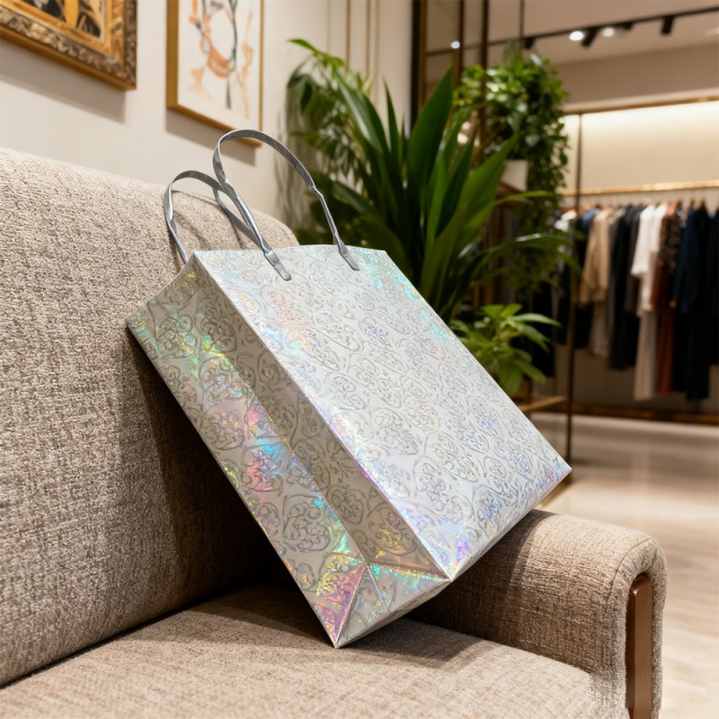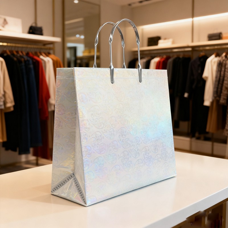 স্পার্কলিং সারফেস: গ্লিটার ফিল্মটি সূক্ষ্ম, প্রিমিয়াম গ্লিটার কণাগুলির সাথে এম্বেড করা হয়েছে যা প্রতিটি কোণ থেকে আলোকে ধরে এবং প্রতিফলিত করে, একটি চিত্তাকর্ষক, বহু-মাত্রিক ঝকঝকে তৈরি করে। এটি তাত্ক্ষণিকভাবে দৃষ্টি আকর্ষণ করে এবং উত্তেজনা এবং উদযাপনের অনুভূতি তৈরি করে। বিলাসবহুল টেক্সচার: পিলিং গ্লিটারের বিপরীতে, আমাদের স্তরিত ফিল্ম স্থায়ীভাবে একটি মসৃণ প্রতিরক্ষামূলক স্তরের নীচে তার চকচকে বজায় রাখে। এটি একটি আরামদায়ক স্পর্শকাতর অনুভূতি প্রদান করার সময় একটি পরিষ্কার এবং পরিপাটি ব্যবহারকারীর অভিজ্ঞতা নিশ্চিত করে। পুনঃব্যবহারযোগ্য ডিজাইন: একটি শক্ত কাগজের কোর এবং একটি শক্ত স্তরিত পৃষ্ঠের সমন্বয় এই ব্যাগটিকে দীর্ঘস্থায়ী করে তোলে। সময়ের সাথে সাথে এর উজ্জ্বলতা বজায় রাখার ক্ষমতা বারবার ব্যবহারে উৎসাহিত করে, প্রাথমিক কেনাকাটার অনেক পরে আপনার গ্রাহকদের হাঁটা ব্র্যান্ড অ্যাম্বাসেডরে পরিণত করে। সূক্ষ্ম মুদ্রণ: আমাদের ডিজাইন টিম আপনার প্রয়োজনীয়তা অনুসারে প্যাটার্ন ডিজাইন করতে পারে এবং আমাদের অত্যাধুনিক সরঞ্জাম এবং উন্নত প্রযুক্তির সাথে পণ্যটিতে সেগুলি প্রদর্শন করতে পারে। আপনার লোগো এবং ডিজাইন পরিষ্কার এবং প্রাণবন্ত রঙের সাথে প্রয়োগ করা যেতে পারে, সর্বাধিক ব্র্যান্ড সচেতনতা অর্জনের জন্য একটি ঝকঝকে ব্যাকগ্রাউন্ডের সাথে একটি সুন্দর বৈসাদৃশ্য তৈরি করে। ব্যক্তিগতকৃত কাস্টমাইজেশন: গ্রাহকরা তাদের প্রয়োজনীয়তা অনুসারে রঙ পরিবর্তন করতে, হ্যান্ডলগুলি প্রতিস্থাপন করতে, নির্দিষ্ট প্যাটার্ন যোগ করতে এবং আকারগুলি কাস্টমাইজ করতে পারেন। আপনার নির্দিষ্ট ব্র্যান্ডের রং এবং বিভিন্ন ইভেন্টের জন্য কার্যকরী প্রয়োজনীয়তা মেলে অসাধারণ নমনীয়তা প্রদান করুন।